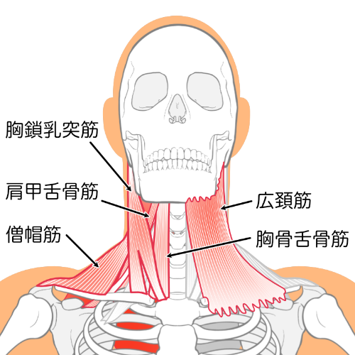 頸部の前側の緊張を取ることで喉の詰まり感が減ることが見込まれます。